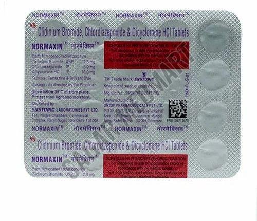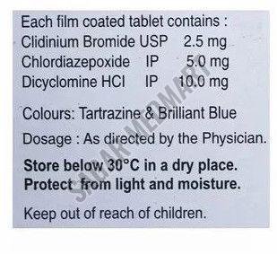 | Composition | Clidinium 2.5mg + Chlordiazepoxide 5mg + Dicyclomine 10mg |