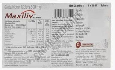 | Composition | Glutathione, Microcrystalline Cellulose, Croscarmellose Sodium, Hydroxypropyl Methylcellulose |